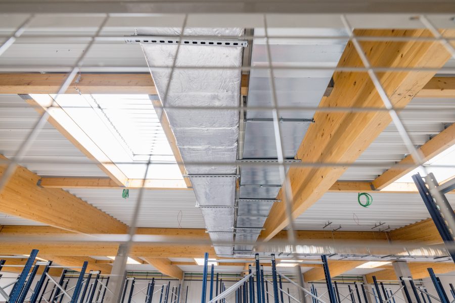 Chauffage, sanitaire, climatisation et ventilation des bureaux et du hall industriel.